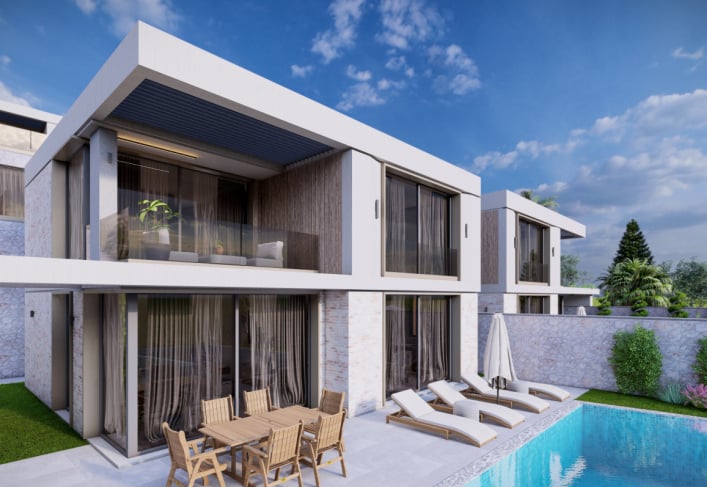 Dwupoziomowe wille na sprzedaż posiadają 2 sypialnie z łazienkami. Domy są w pełni umeblowane. Kupujący mogą personalizować domy za pomocą wybranych kolorów, materiałów i mebli. Wille oferują gwarancję dochodu z wynajmu dzięki prestiżowej lokalizacji, eleganckiemu projektowi i bogatemu wyposażeniu.