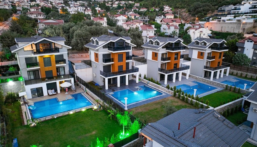 Położone na działce o powierzchni 550 m² w Fethiye, Muğla, te wolnostojące wille z 4 sypialniami oferują zamkniętą przestrzeń mieszkalną o powierzchni 240 m², prywatny basen i jacuzzi.