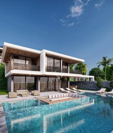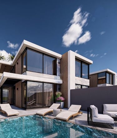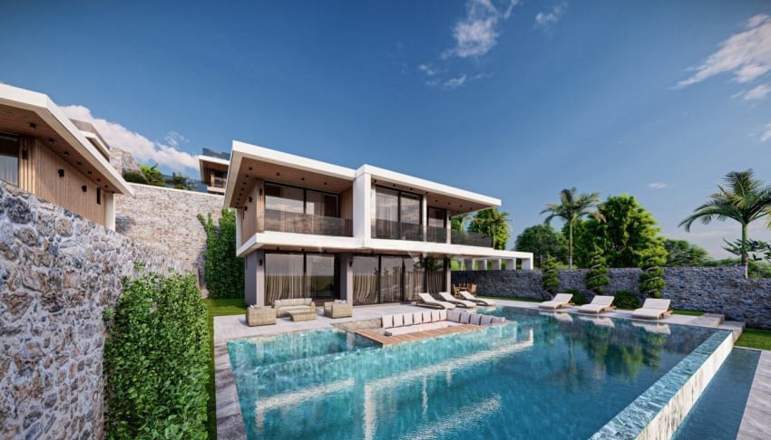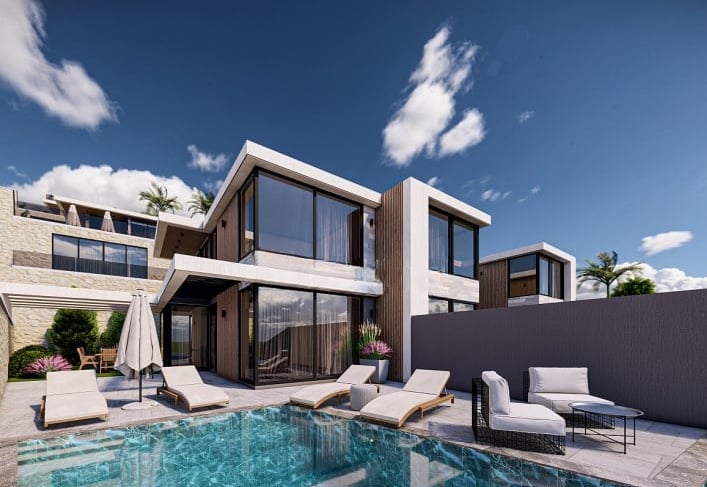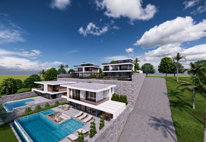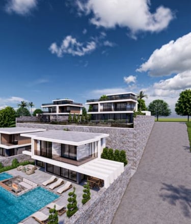 Projekt obejmuje działkę o powierzchni 2 934 m² i oferuje 8 domów: domy w zabudowie bliźniaczej 2+1 oraz domy 4+1 i 5+1. Domy w zabudowie bliźniaczej znajdują się na froncie inwestycji. Każdy dom posiada prywatny basen typu infinity, podgrzewany basen wewnętrzny, basen dla dzieci, ogród, garaż wewnętrzny i zewnętrzny, miejsce do grillowania oraz plac zabaw.