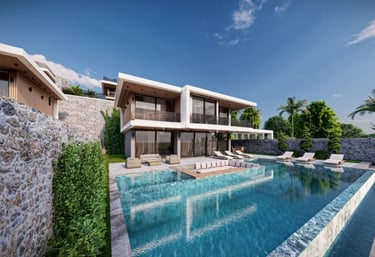 Domy z widokiem na przyrodę i morze znajdują się w centrum regionu Kalkan w Antalya Kaş. Jako region o intensywnej turystyce, możesz wykorzystać swój dom w celach wakacyjnych lub zarabiać wysokie dochody z wynajmu krótkoterminowego.