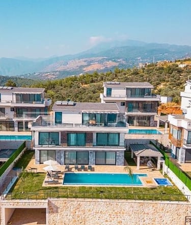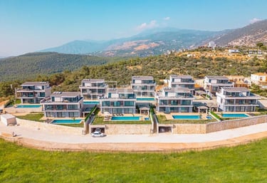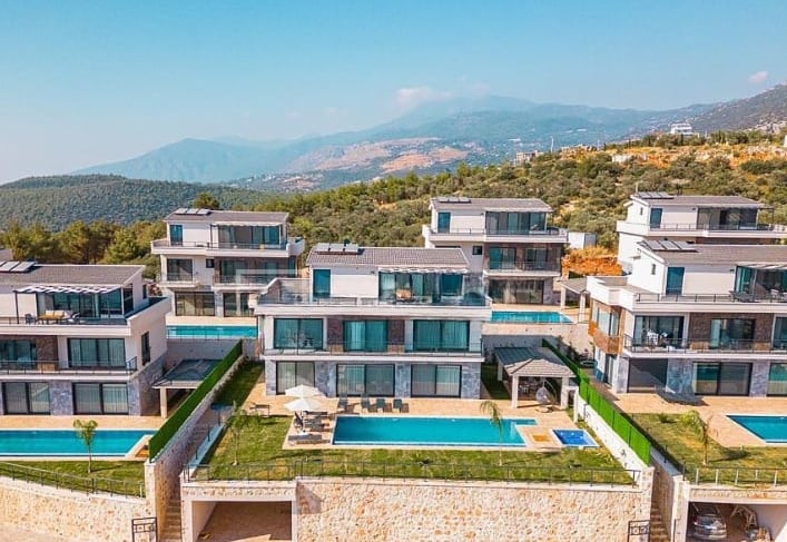Wolnostojące wille z 4 sypialniami położone są 4 km od centrum Kalkan, 5 km od morza i plaży, 9 km od plaży Kaputaş, 14 km od plaży Patara i starożytnego miasta Patara oraz 124 km od lotniska Dalaman.